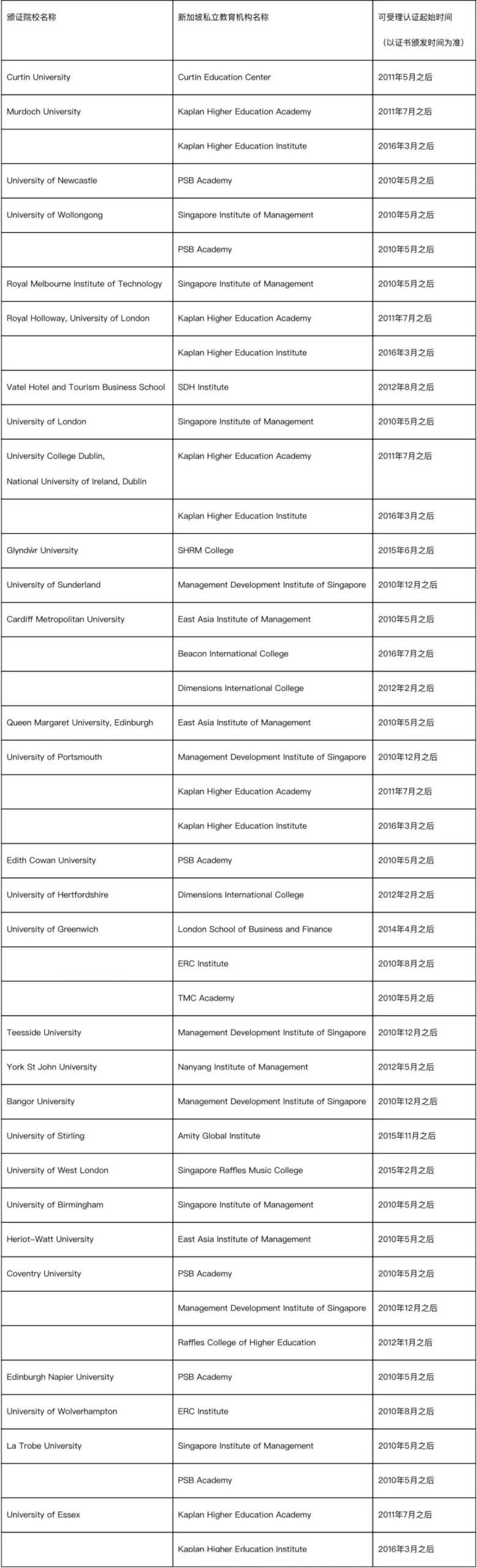 近年来,由于出国留学人员不断增多,国内针对海外学历也开设了认证机制,把符合教育审核标准的院校纳入认证名录内,新加坡的各所私立大学也逐渐被纳入其中。