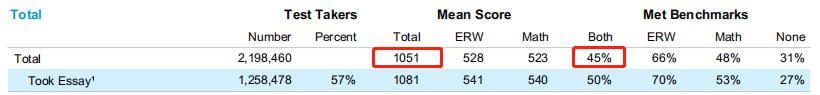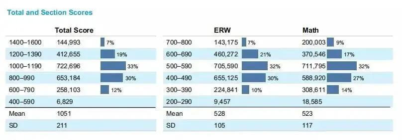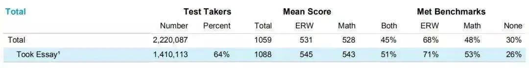 达到大学基准线以上的考生约占全球45%,CB计算的基准分分为数学和阅读两部分。数学基准分是530分,阅读则为480分。